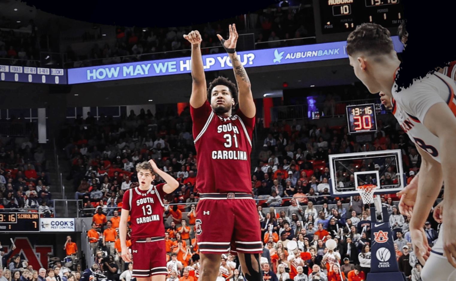🔺 Fell Short. The men’s basketball team’s late rally wasn’t enough as they fell to Auburn 71-67 on the road. Meechie Johnson led the Gamecocks with 17 points, six assists, five rebounds, and three steals. Mike Sharavjamts scored 13 points and added a pair of blocks, recording his fifth multi-block game of the season. The Gamecocks will host Oklahoma tomorrow.