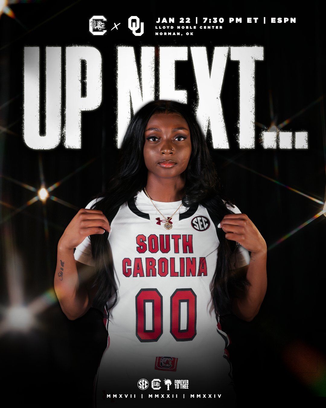 🔺 Top-20 Trip. The second-ranked women’s basketball team will play at No. 16 Oklahoma tonight at 7:30 p.m. on ESPN. South Carolina and Oklahoma are 1-2 in rebounding in SEC play this season. The Sooners are riding a three-game SEC losing streak entering tonight’s contest.