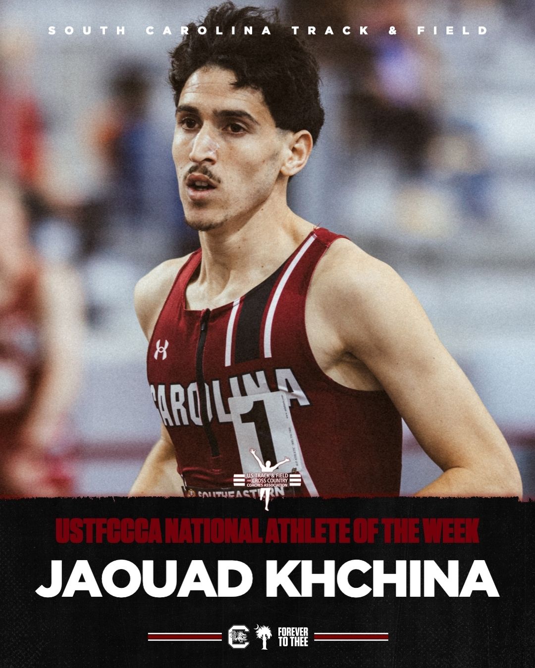 🔺 Nation On Notice. Gamecock distance runner Jaouad Khchina has been named the USTFCCCA National Athlete of the Week! He set a new program record in the 1000m at the Orange & Purple Invite with a time of 2:17.36, the second-fastest mark in collegiate history.