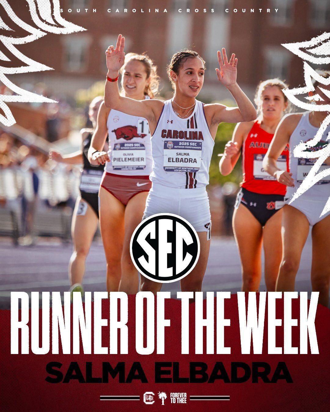 🔺 Debut To Remember. After making her Gamecock cross country debut, Salma Elbadra has been named the SEC Women’s Runner of the Week! She finished third overall at the Joe Piane Notre Dame Invitational on Friday. She recorded just the second sub-16-minute 5K time in program history.