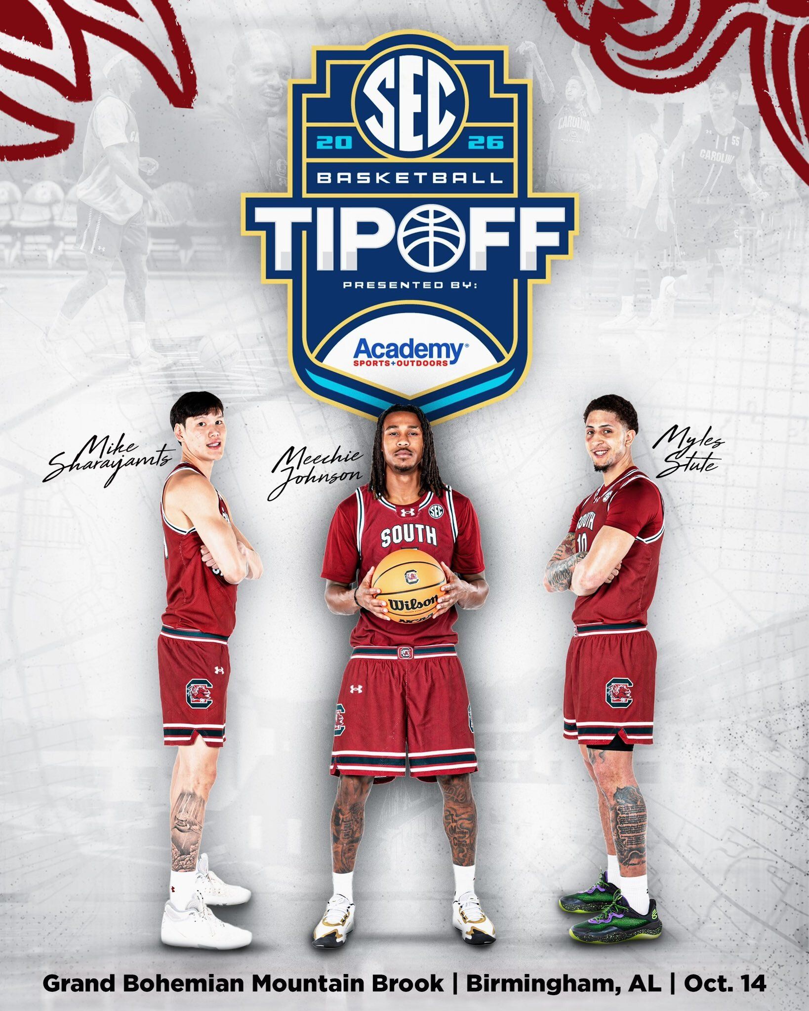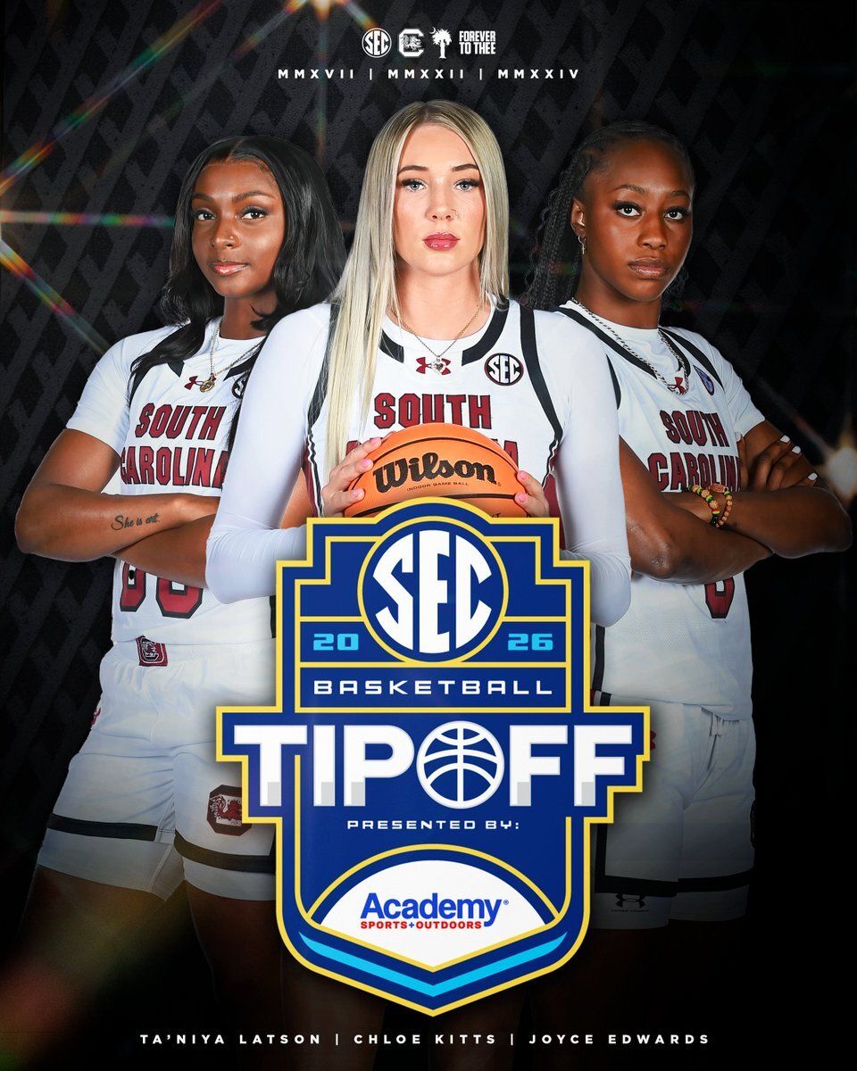 🔺 Representing Well. Gamecock women’s basketball is sending All-Americans Ta’Niya Latson, Chloe Kitts, and Joyce Edwards to SEC Tip-Off next week! The event will take place at Grand Bohemian Mountain Brook in Birmingham, Alabama on Oct. 14.
