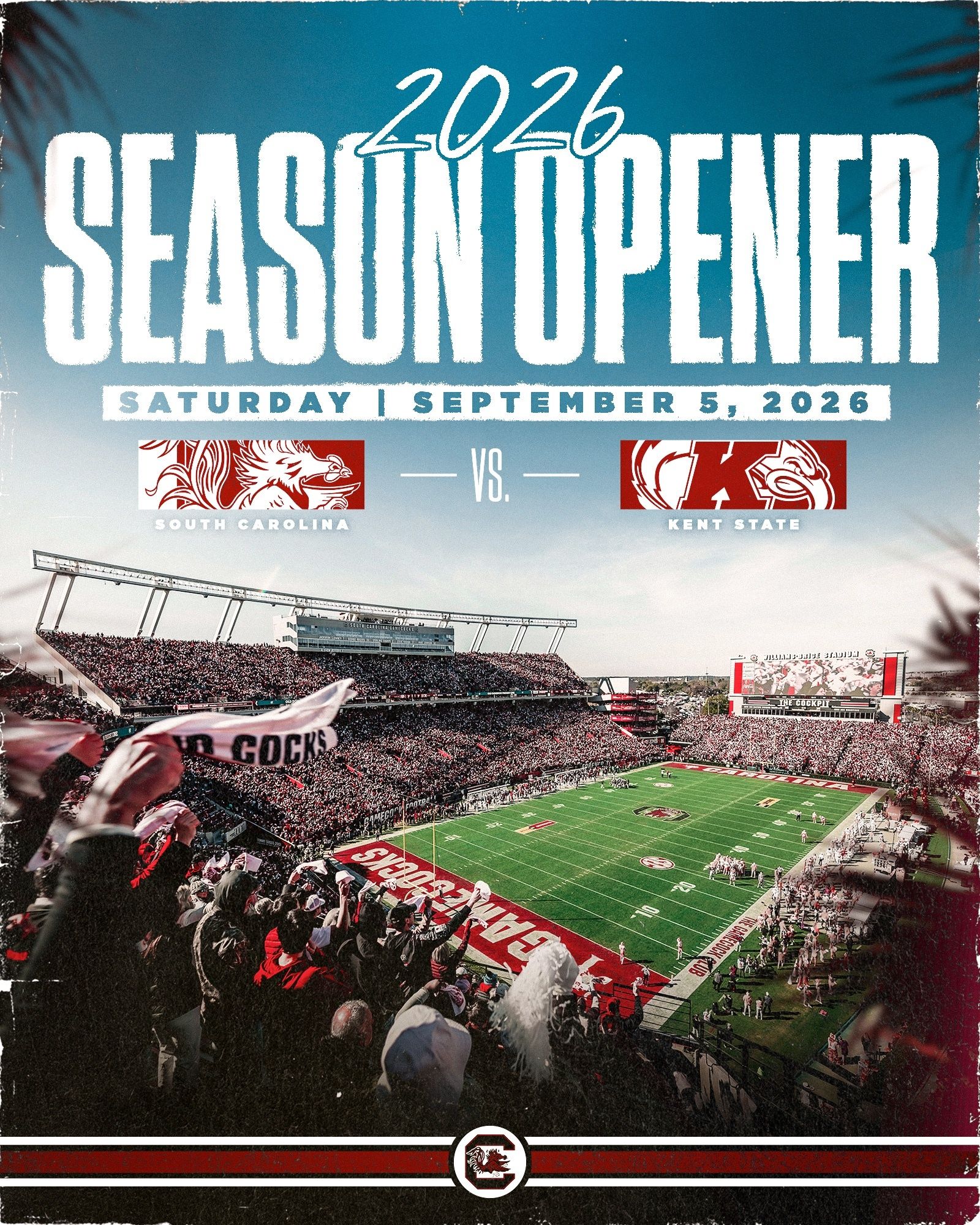 🔺 Season Opener Set. Gamecock football will open the 2026 football season against Kent State on Sept. 5 at Williams-Brice Stadium. This will be the second meeting between the two teams, with the Gamecocks winning the first in 1995.