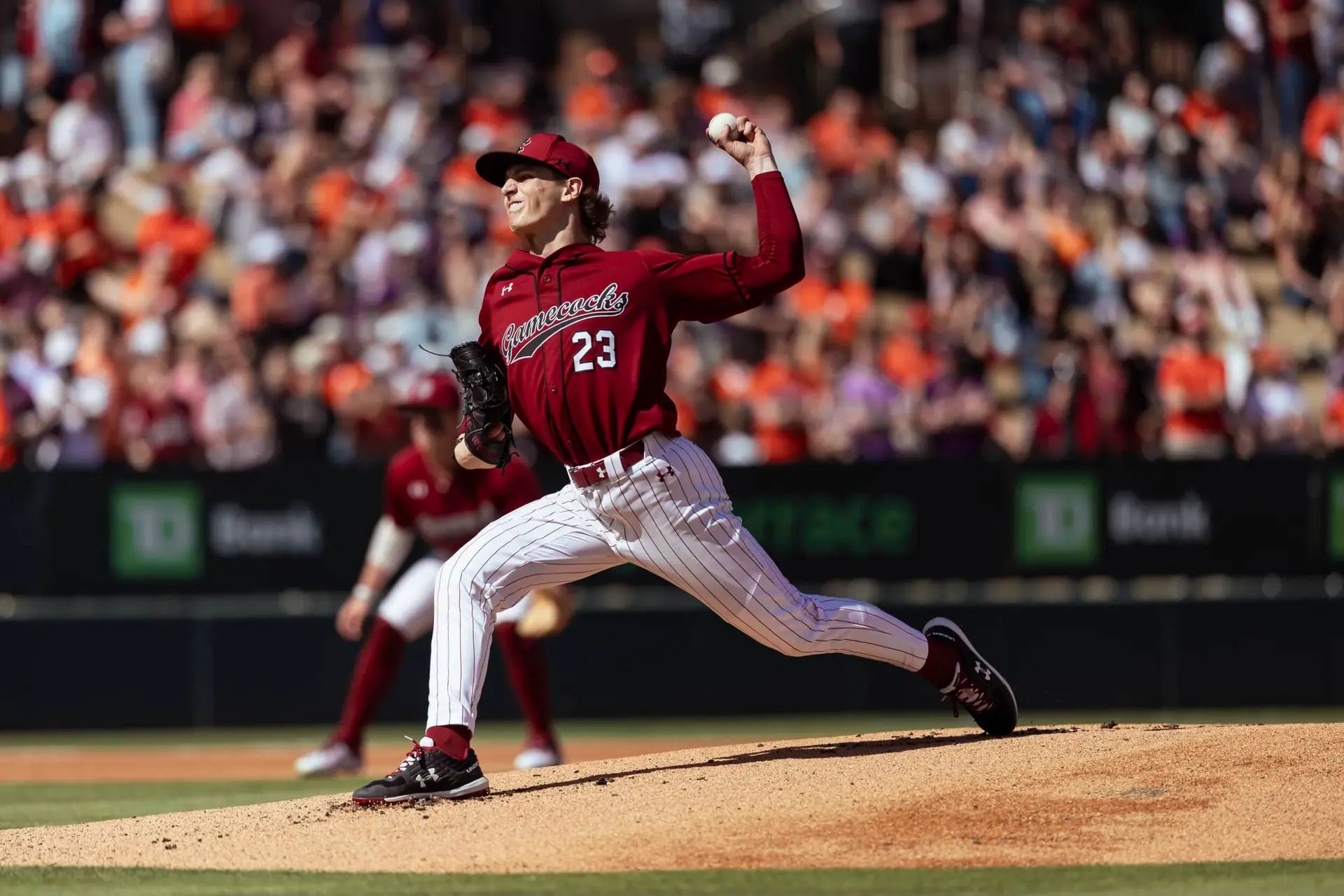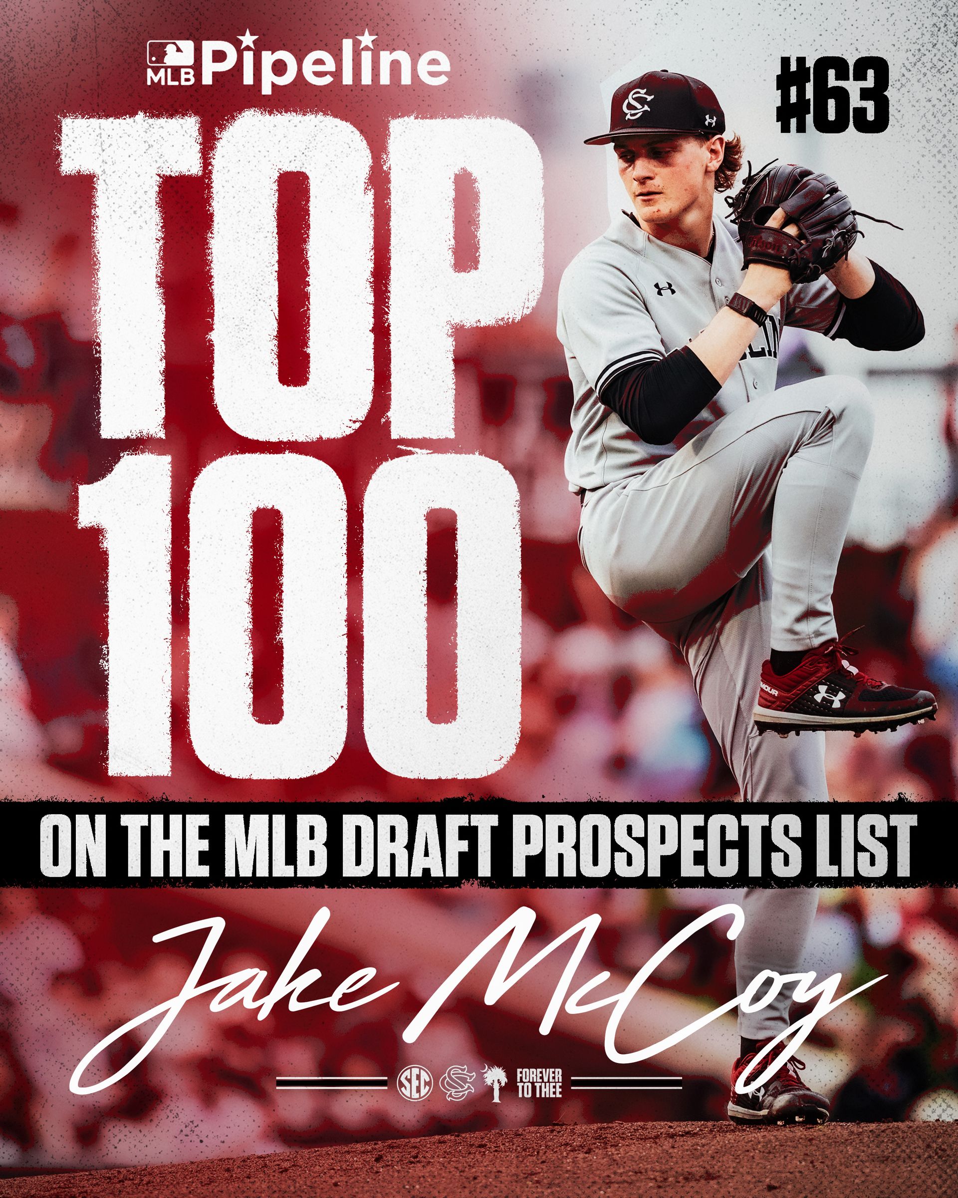 🔺 Bright Future. South Carolina pitcher Jake McCoy was named in the Top 100 on the MLB Draft Prospects List! The left-hander recorded a 7.11 ERA in his first two seasons at South Carolina. He had a dominant summer in the Cape Cod League, striking out 25 of the 54 Cape batters he faced.