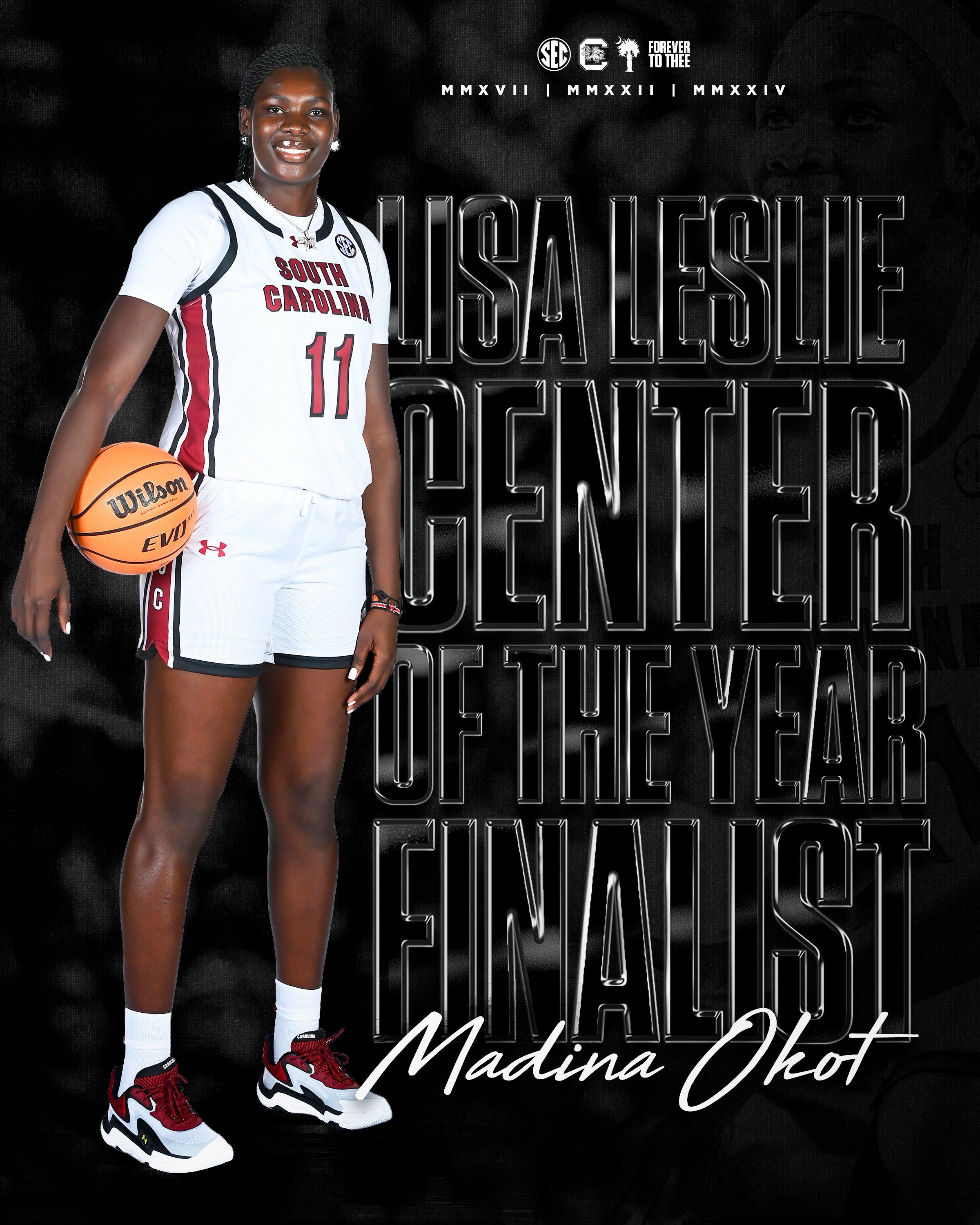 🔺 Center Stage. South Carolina senior Madina Okot is a finalist for the 2026 Lisa Leslie Center of the Year Award. Okot ranks third nationally with 21 double-doubles and leads the SEC with 10.9 rebounds per game.