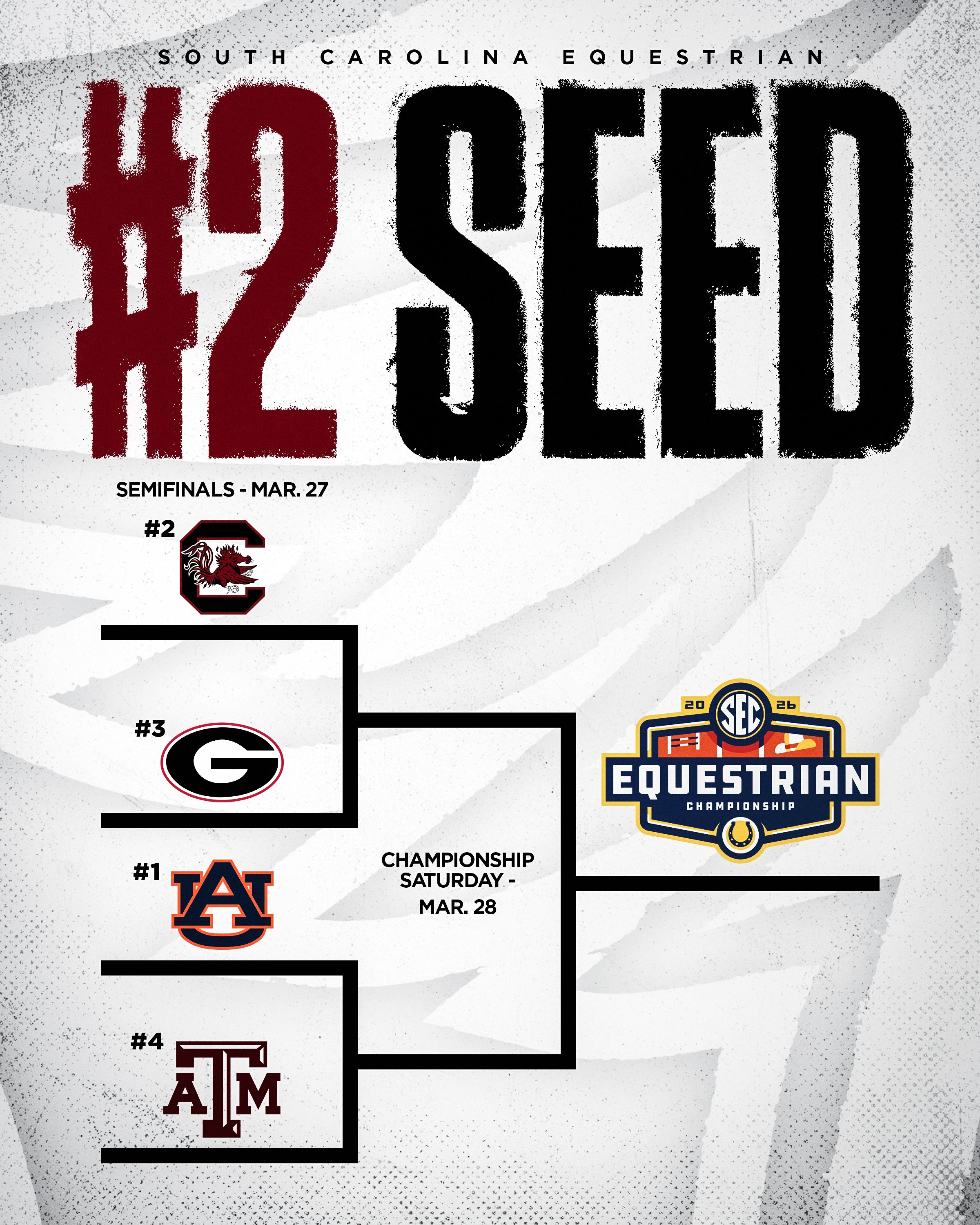 🔺 Looking To Defend. South Carolina equestrian looks to defend its SEC title this weekend! The No. 2 seed Gamecocks will go up against the No. 3 seed Georgia tomorrow at noon. No. 1 seed Auburn hosts this year’s SEC Championship.