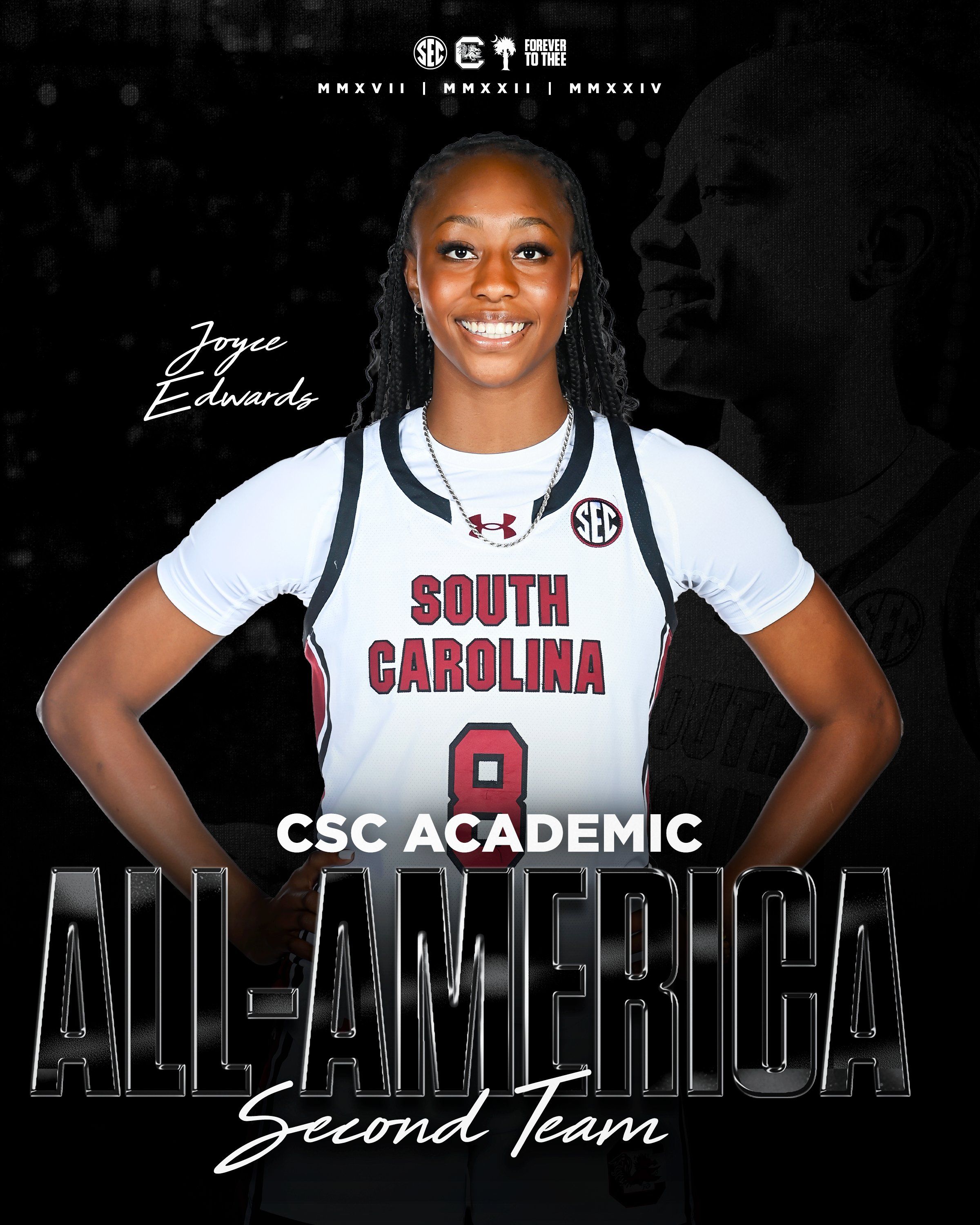 🔺 Academic Weapon. South Carolina women’s basketball sophomore Joyce Edwards earned a spot on the 2026 College Sports Communicators Academic All-America Second Team. Edwards, an environmental science major with a GPA over 3.7, is the fourth Gamecock to achieve this honor and the first since 2023.