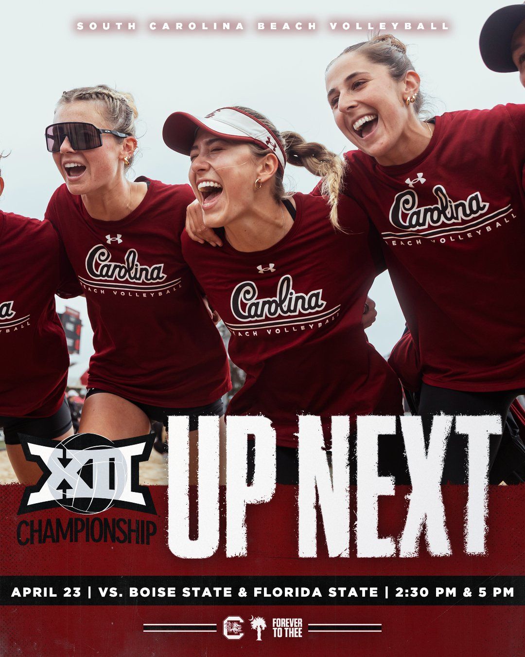 🔺 Tourney Time. The No. 15 South Carolina beach volleyball team, seeded fourth, will compete in the 2026 Big 12 Beach Volleyball Championships in Tucson, Arizona. They will play No. 5 Boise State today at 2:30 p.m., then No. 1 Florida State at 5 p.m.