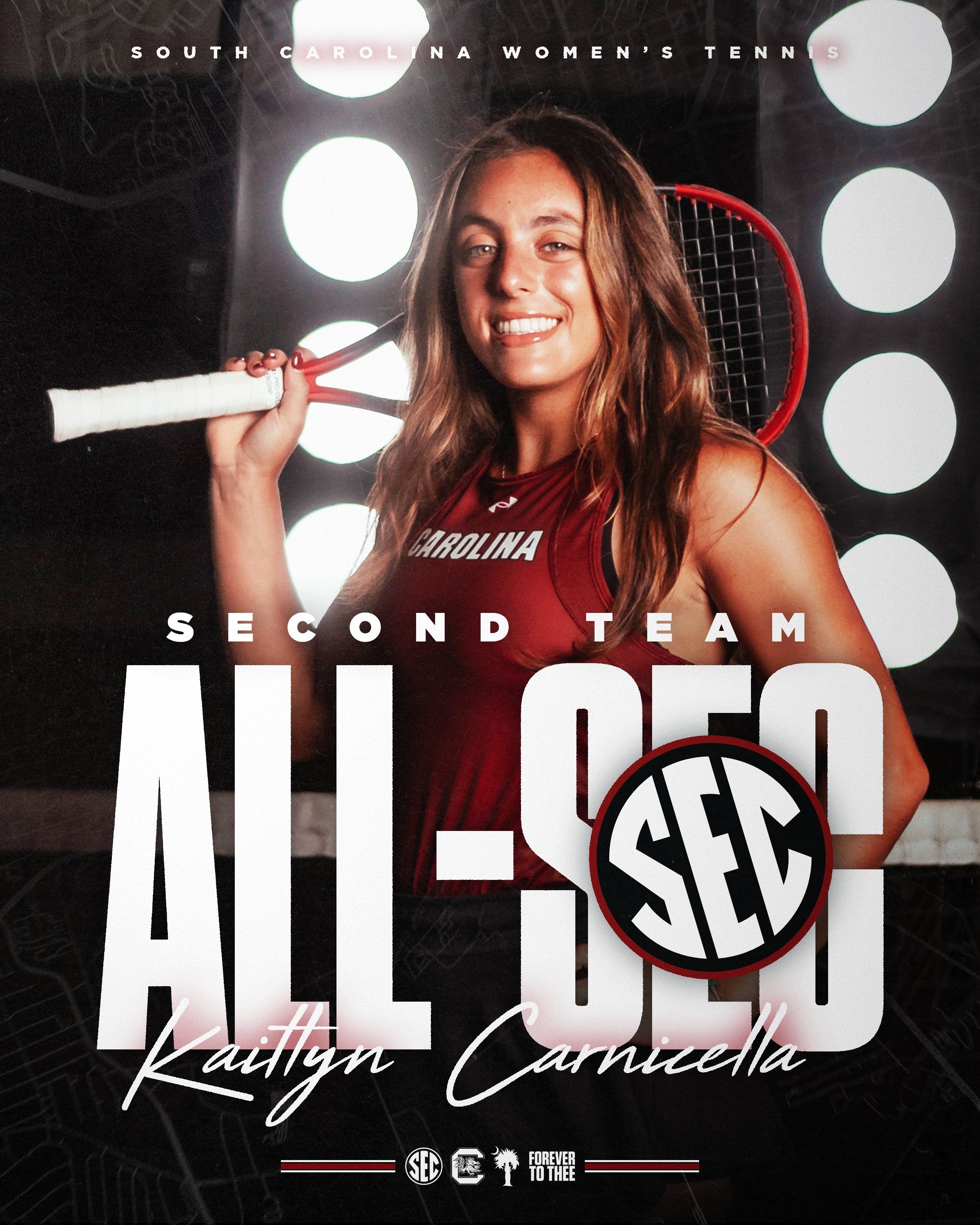 🔺 Earned It. Women’s tennis junior Kaitlyn Carnicella earned All-SEC Second Team honors for the second time in her career. She compiled a 17-9 singles record and an 11-11 doubles record, playing from the No. 1 position in singles and a combination of positions in doubles.