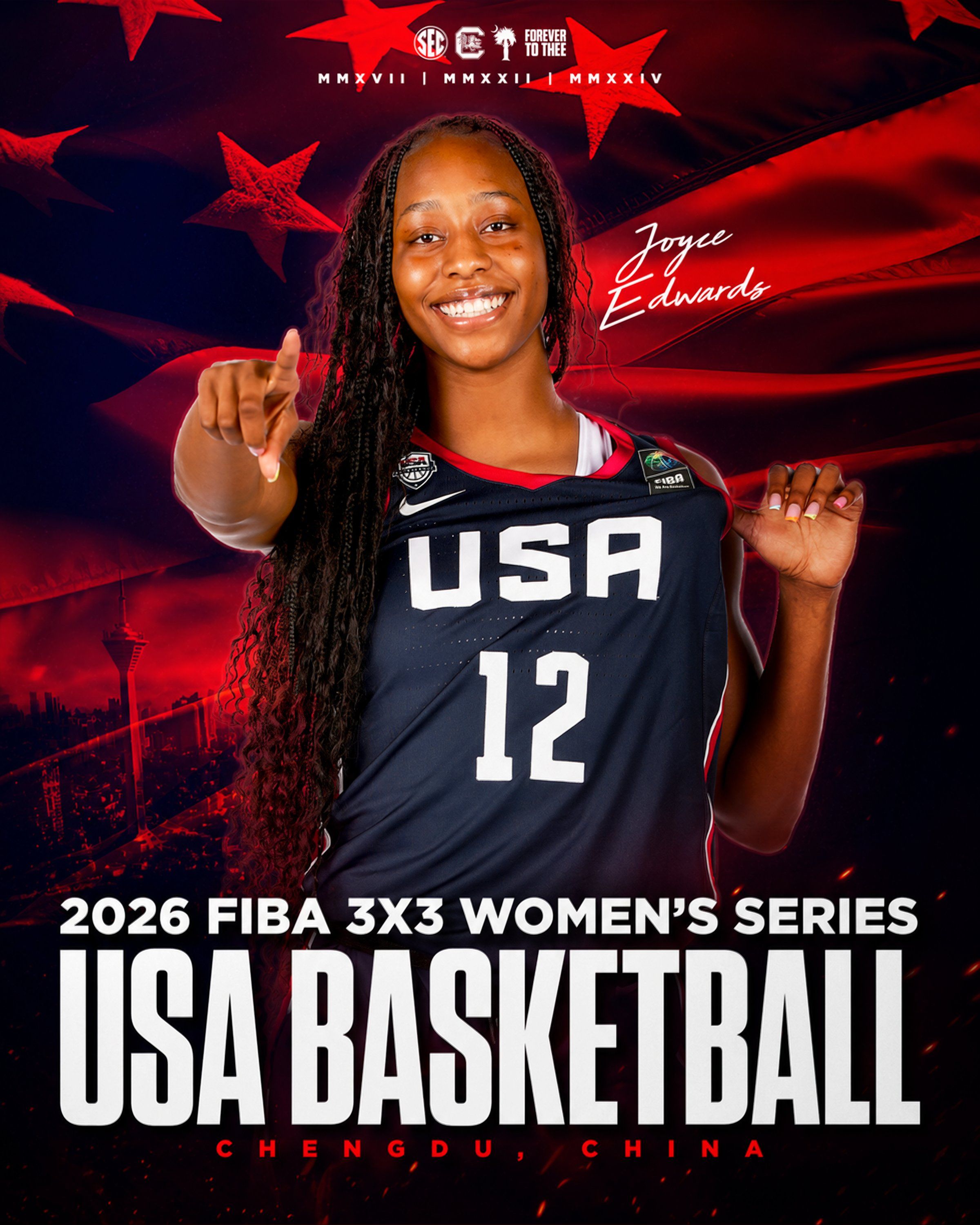 🔺 For The Star & Stripes. South Carolina’s Joyce Edwards was named to the USA team for the 2026 FIBA 3×3 Women’s Series, starting Friday in Chengdu, China. This is her second 3×3 assignment with USAB, following last summer’s FIBA 3×3 Nations League America Conferences title run.